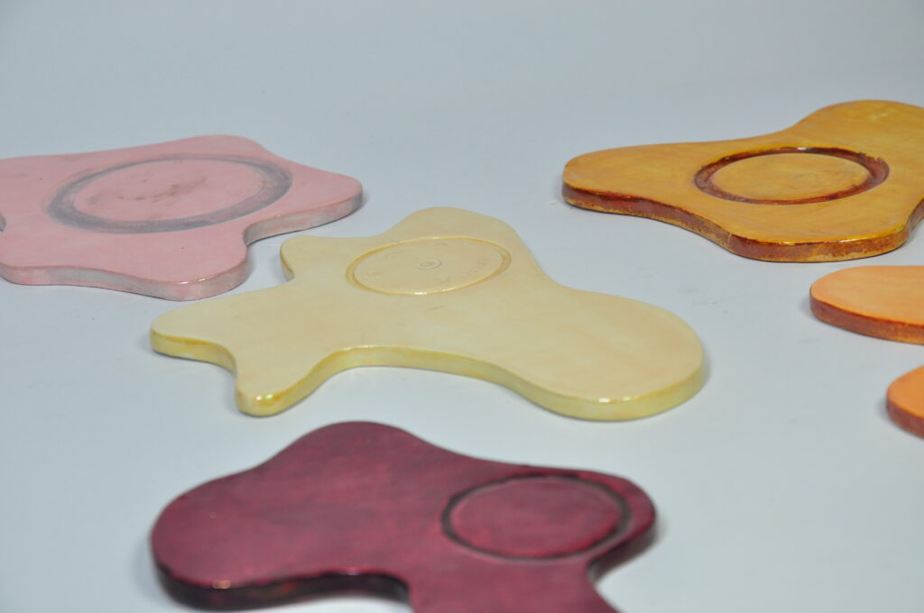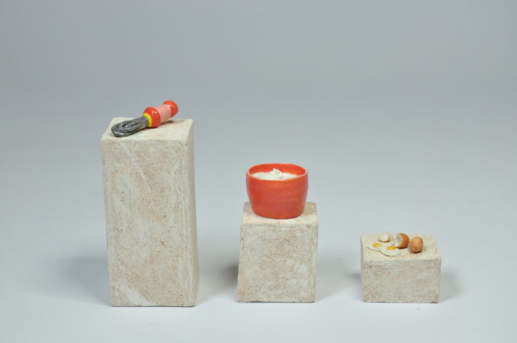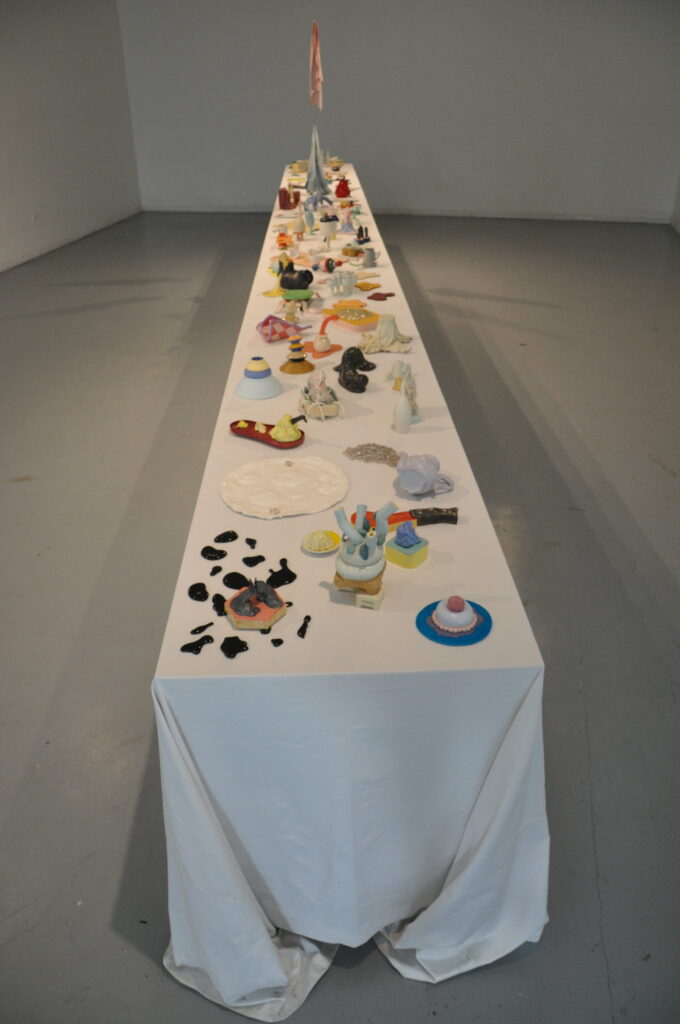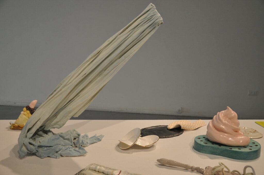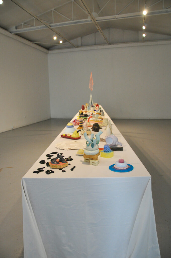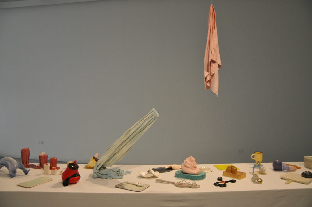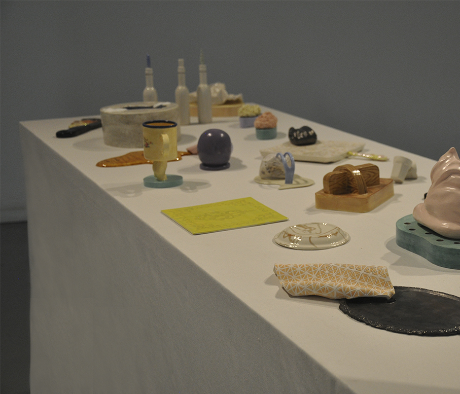 La cerámica opera como hilo conductor de la producción, ofreciendo la versatilidad e infinidad de materialidades y elementos que remiten, en parte, a un imaginario doméstico que es reafirmado con la temática de la lista. Este lenguaje referencial del listado es puesto en conflicto por la informidad y la hibridez: conformando objetos ambiguos; propensos a generar interrogantes en el espectador respecto a su uso, historia o posibles narraciones que se establecen y/o activan entre los objetos.