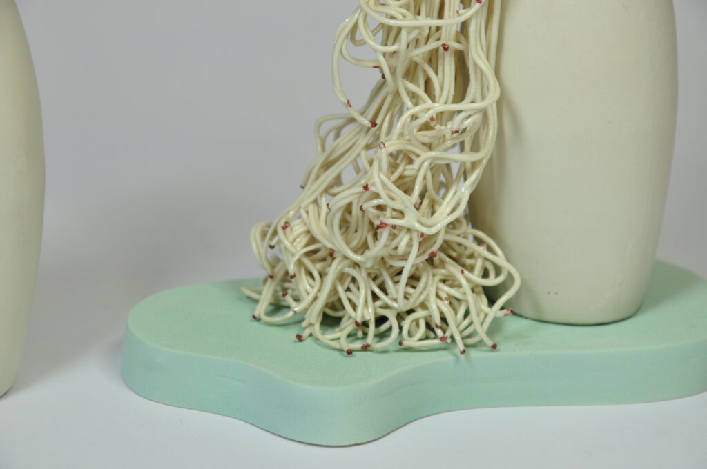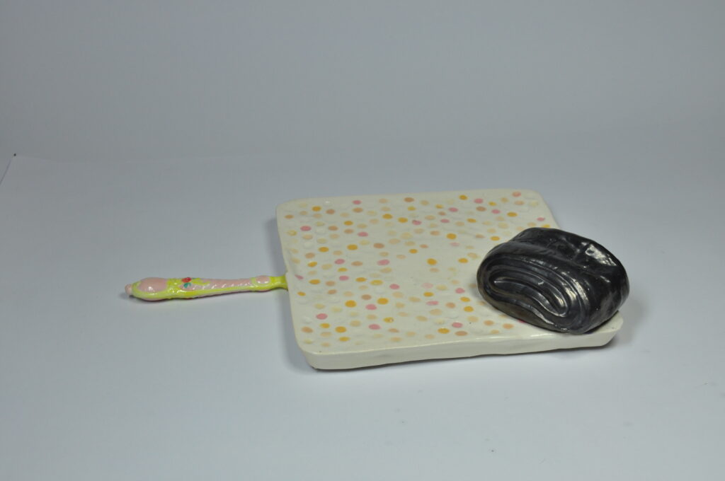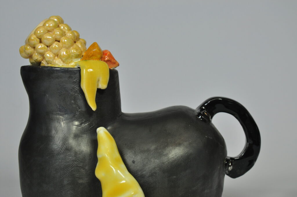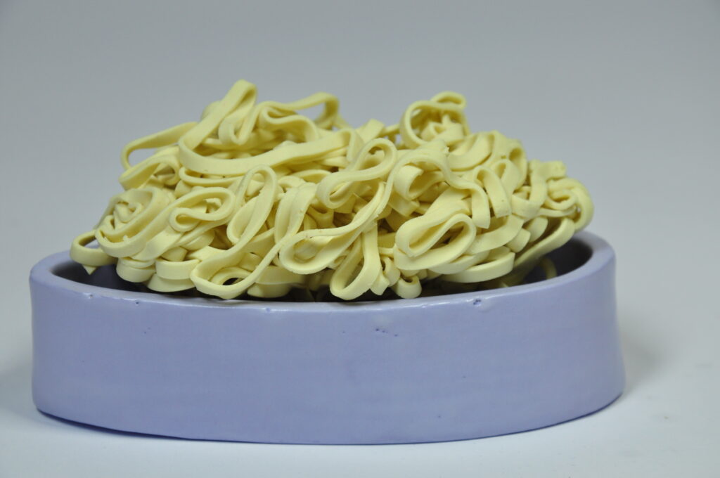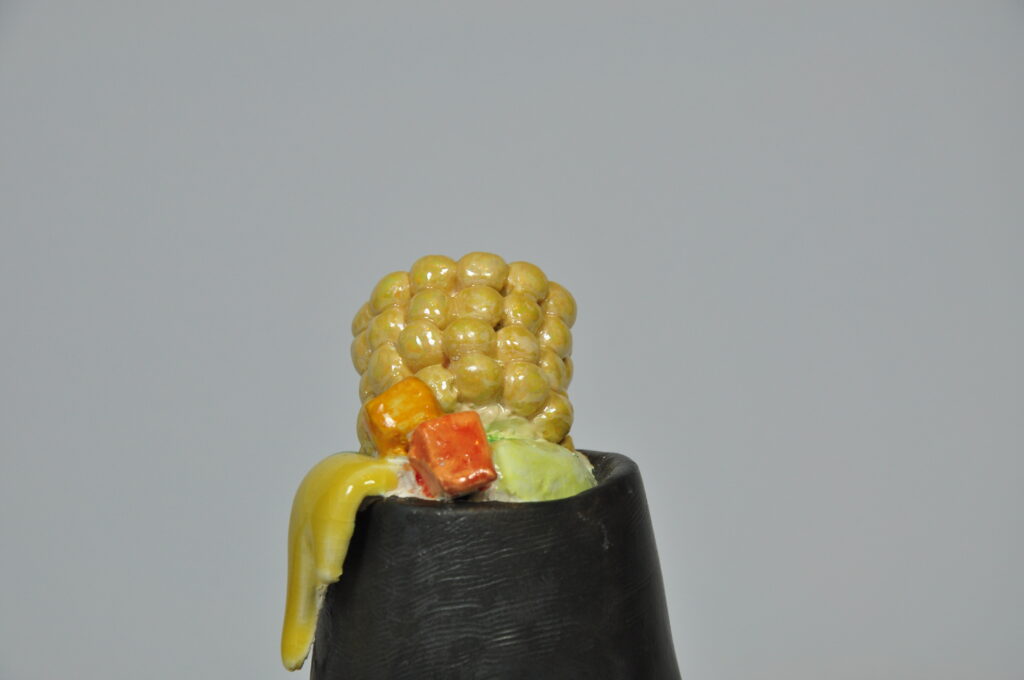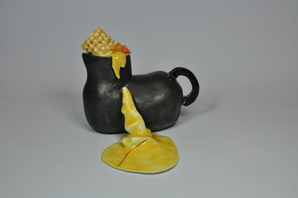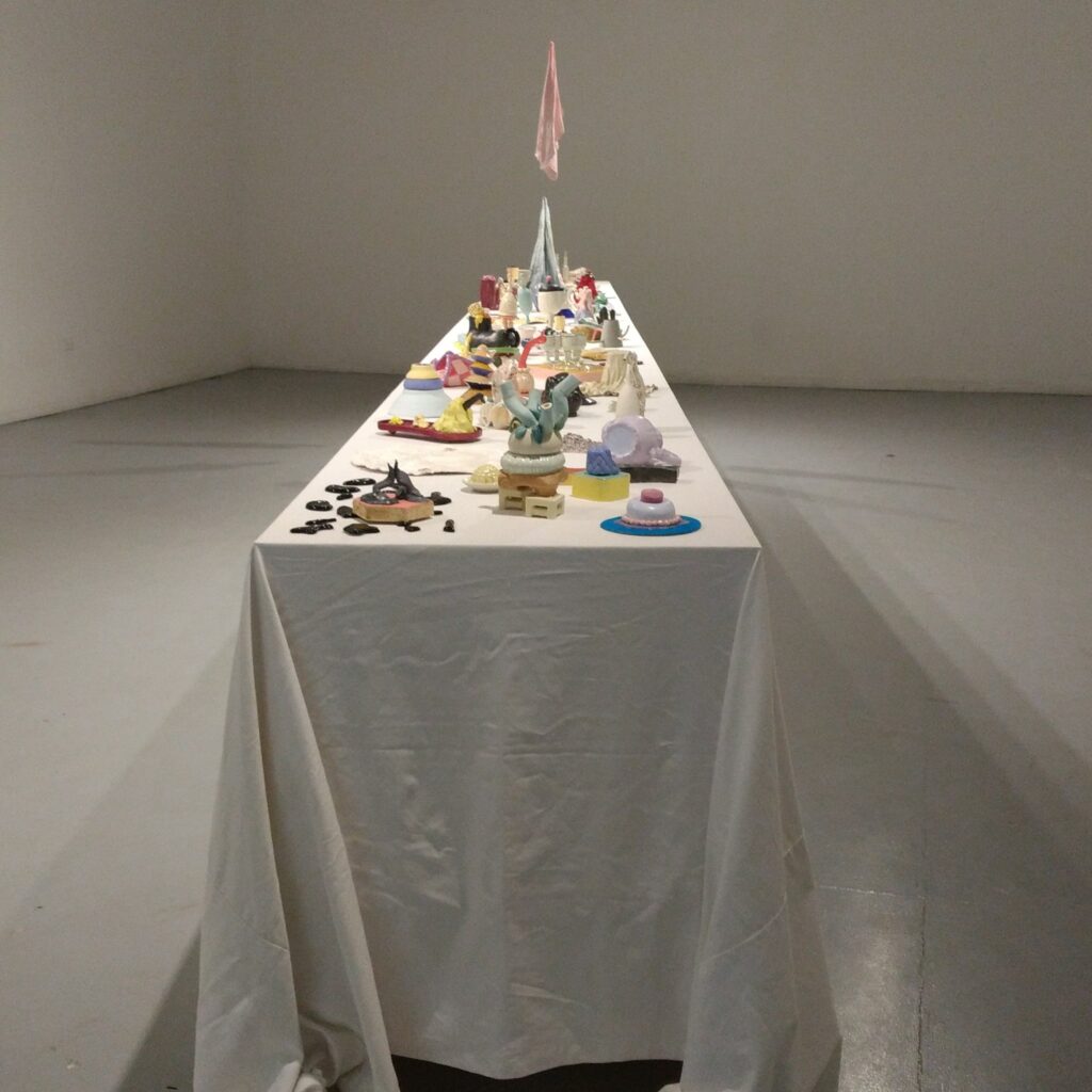 La cerámica opera como hilo conductor de la producción, ofreciendo la versatilidad e infinidad de materialidades y elementos que remiten, en parte, a un imaginario doméstico que es reafirmado con la temática de la lista. Este lenguaje referencial del listado es puesto en conflicto por la informidad y la hibridez: conformando objetos ambiguos; propensos a generar interrogantes en el espectador respecto a su uso, historia o posibles narraciones que se establecen y/o activan entre los objetos.