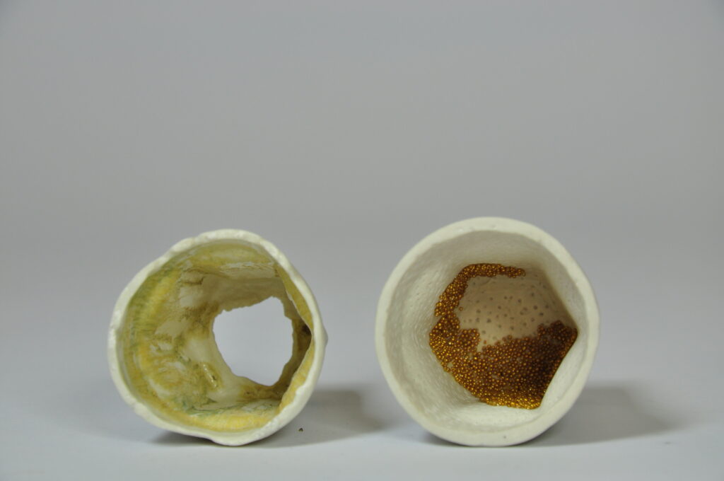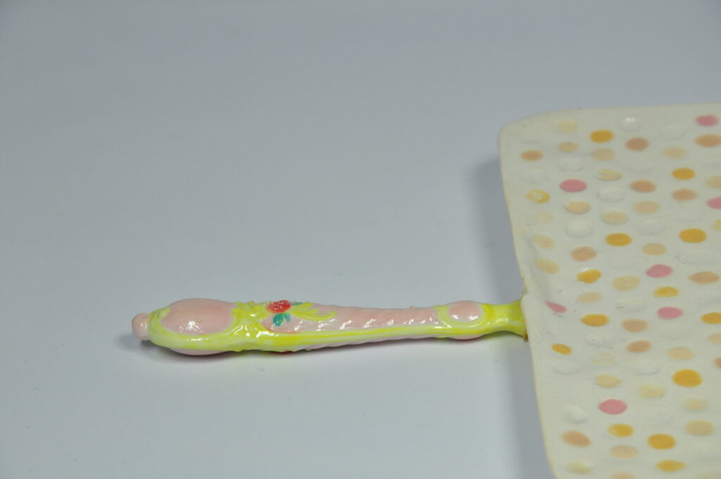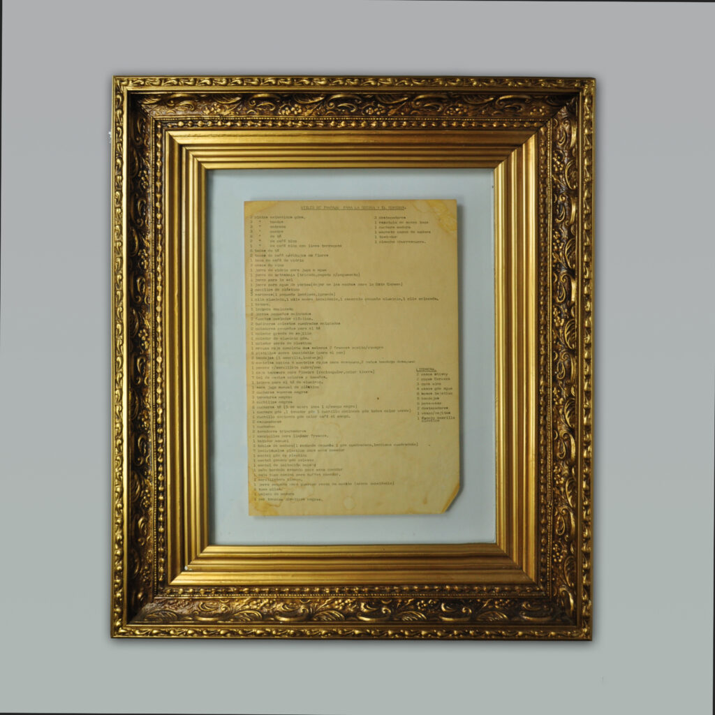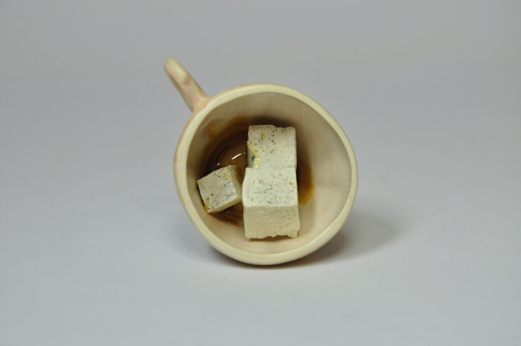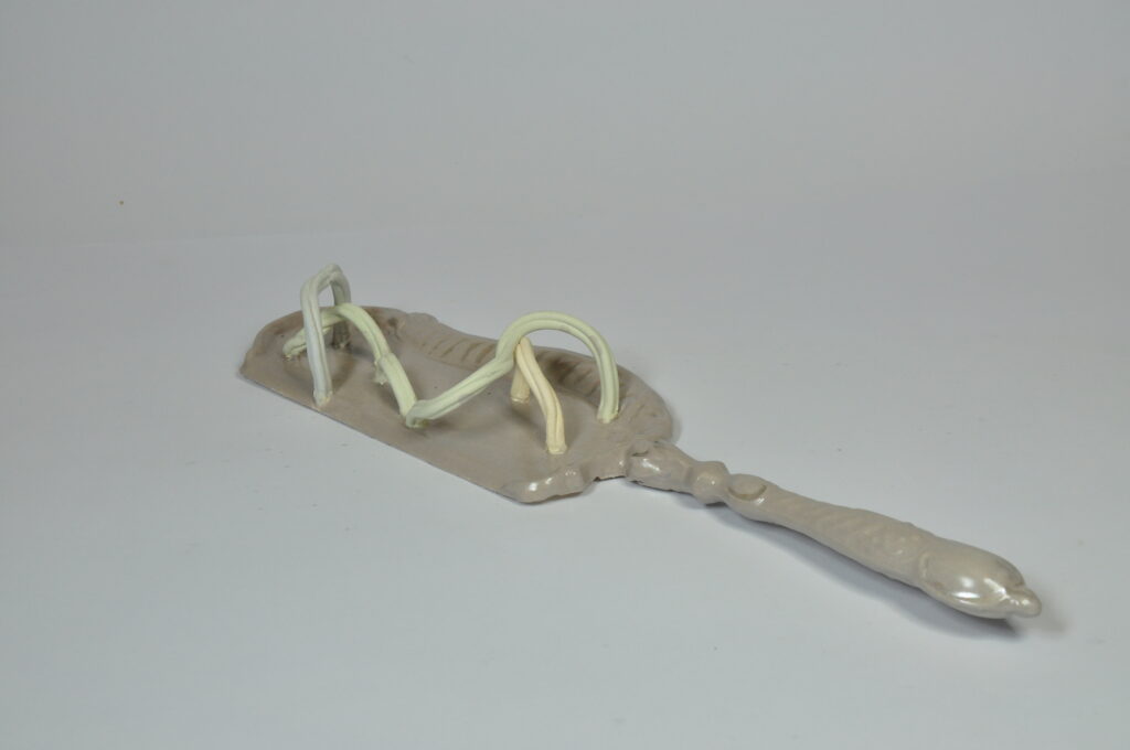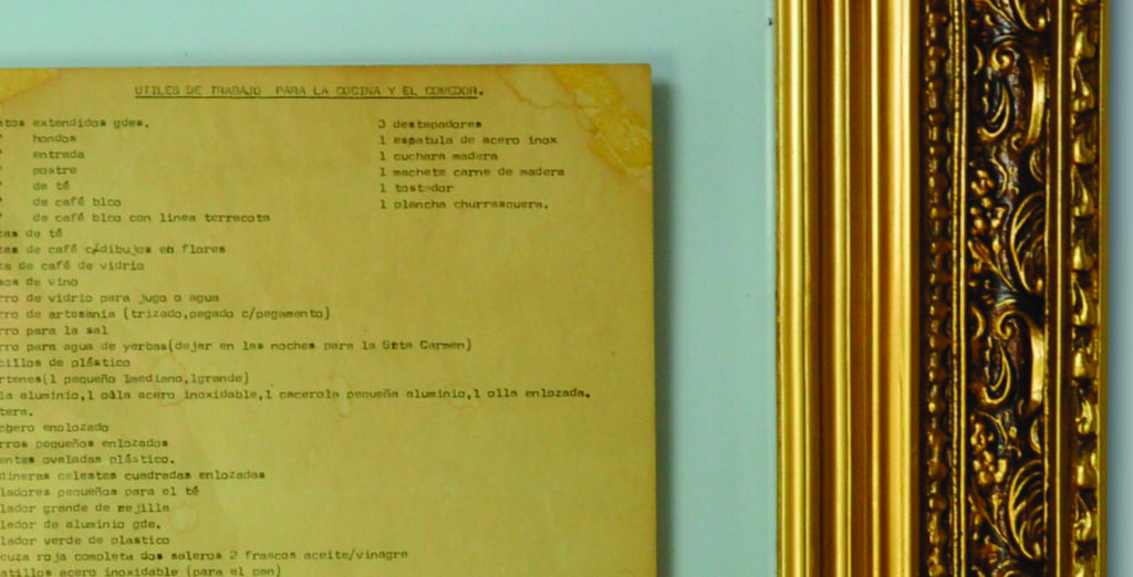 emoria Selectiva es una propuesta que utiliza como punto de partida un antiguo papel con objetos inventariados de una cocina. Dicho documento fue olvidado en una casa particular deshabitada y luego rescatado por la artista. La lista contiene enumerados todos los bienes presentes en algún momento pasado de la historia del inmueble, cuya imagen nunca fue vista y que es reinterpretada por medio del material cerámico de acuerdo a las múltiples posibilidades que ofrece el lenguaje abierto y escasamente descriptivo de un inventario.